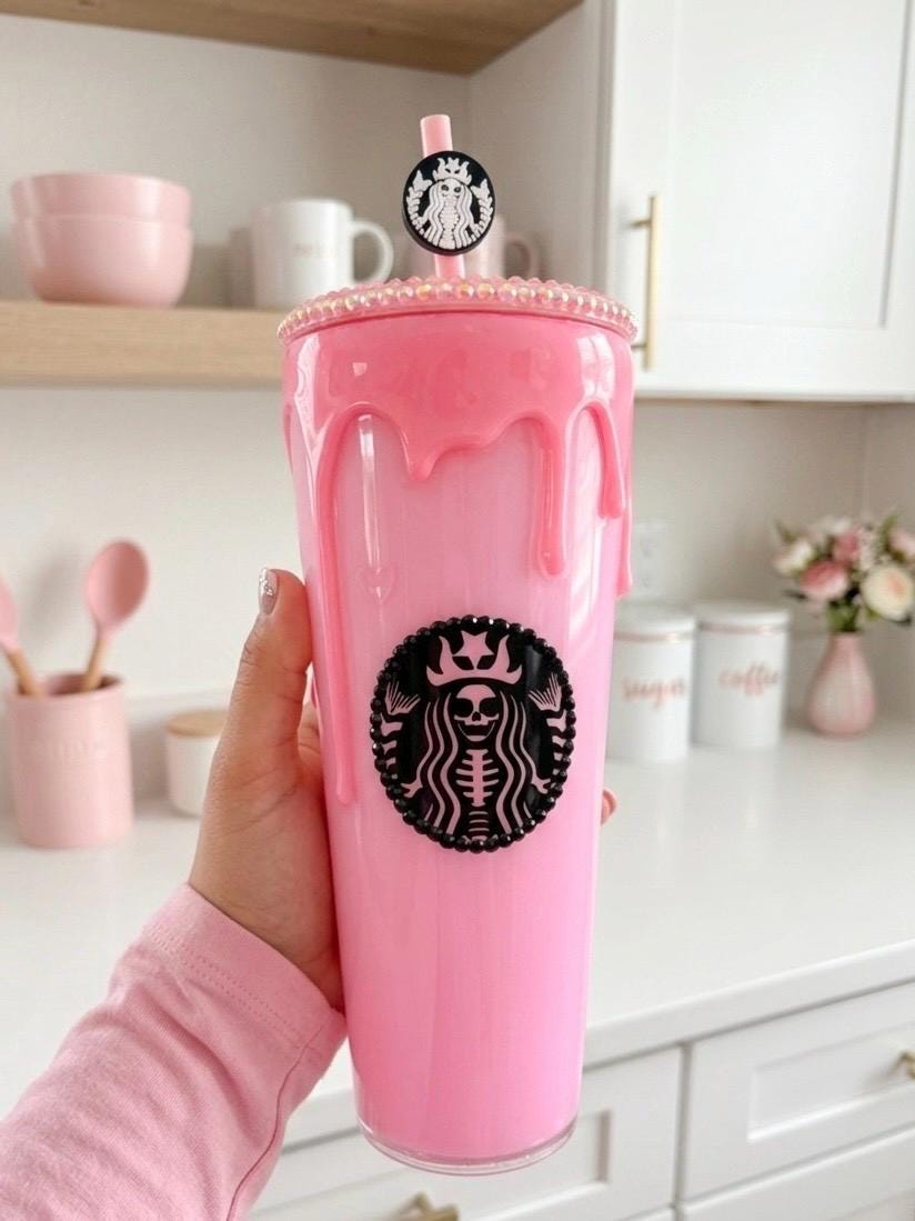 Pink drip snowglobe cup | Skeleton tumbler | Valentine's Day gift | Pink snowglobe cup