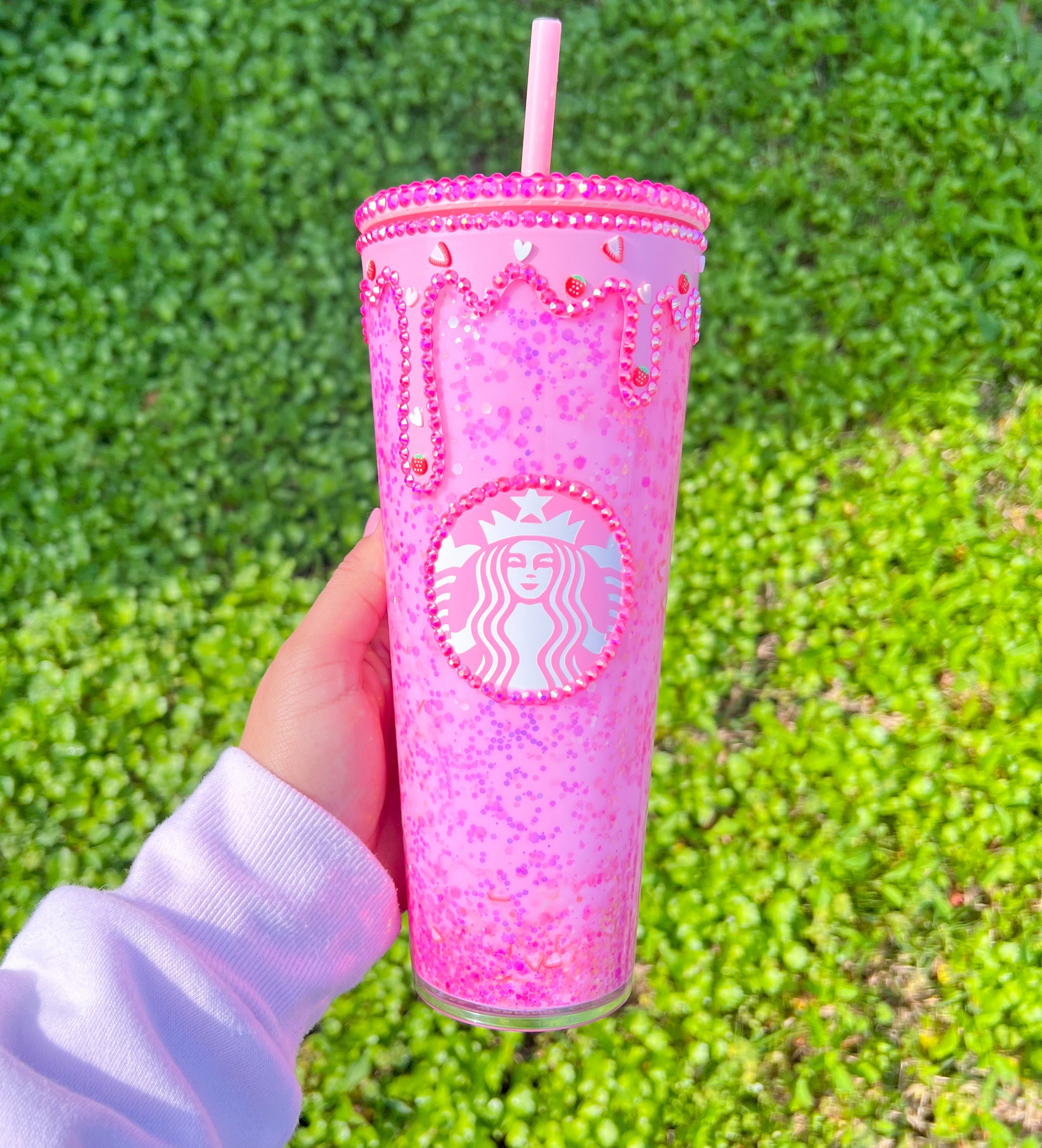 Strawberry snowglobe cup | pink drink cup | pink snowglobe cup | personalized cup