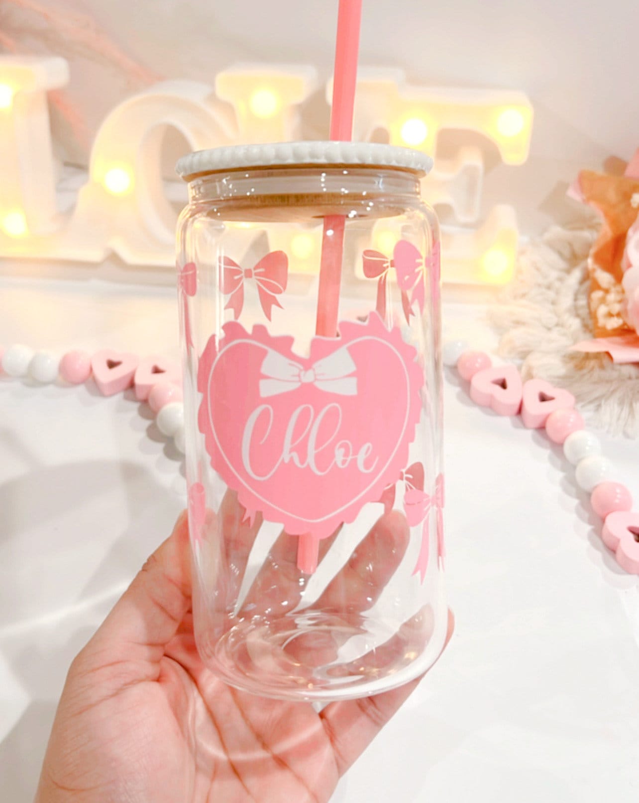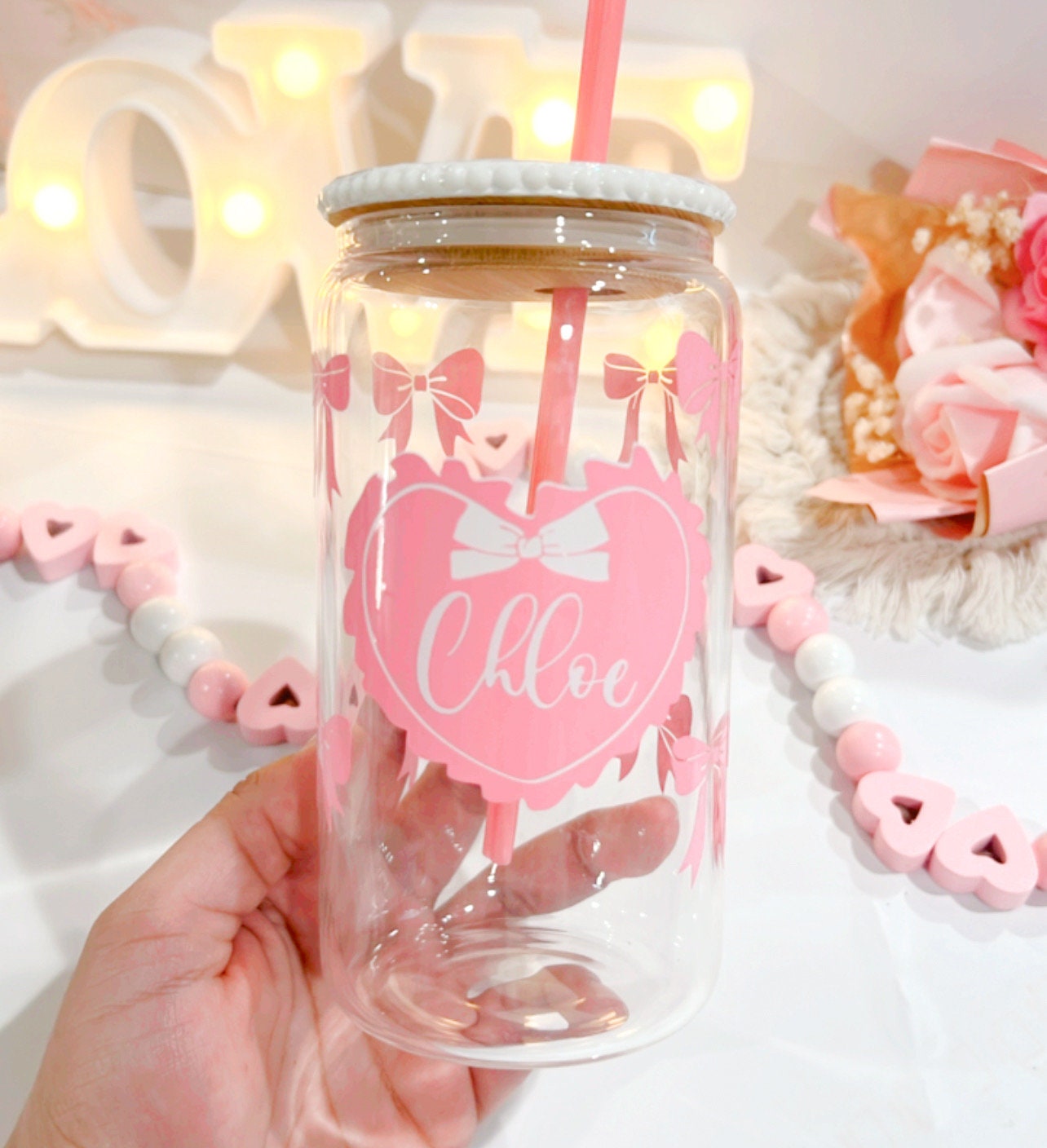 personalized Pink Bow cup | Coquette glass cup | soft girl style glass can