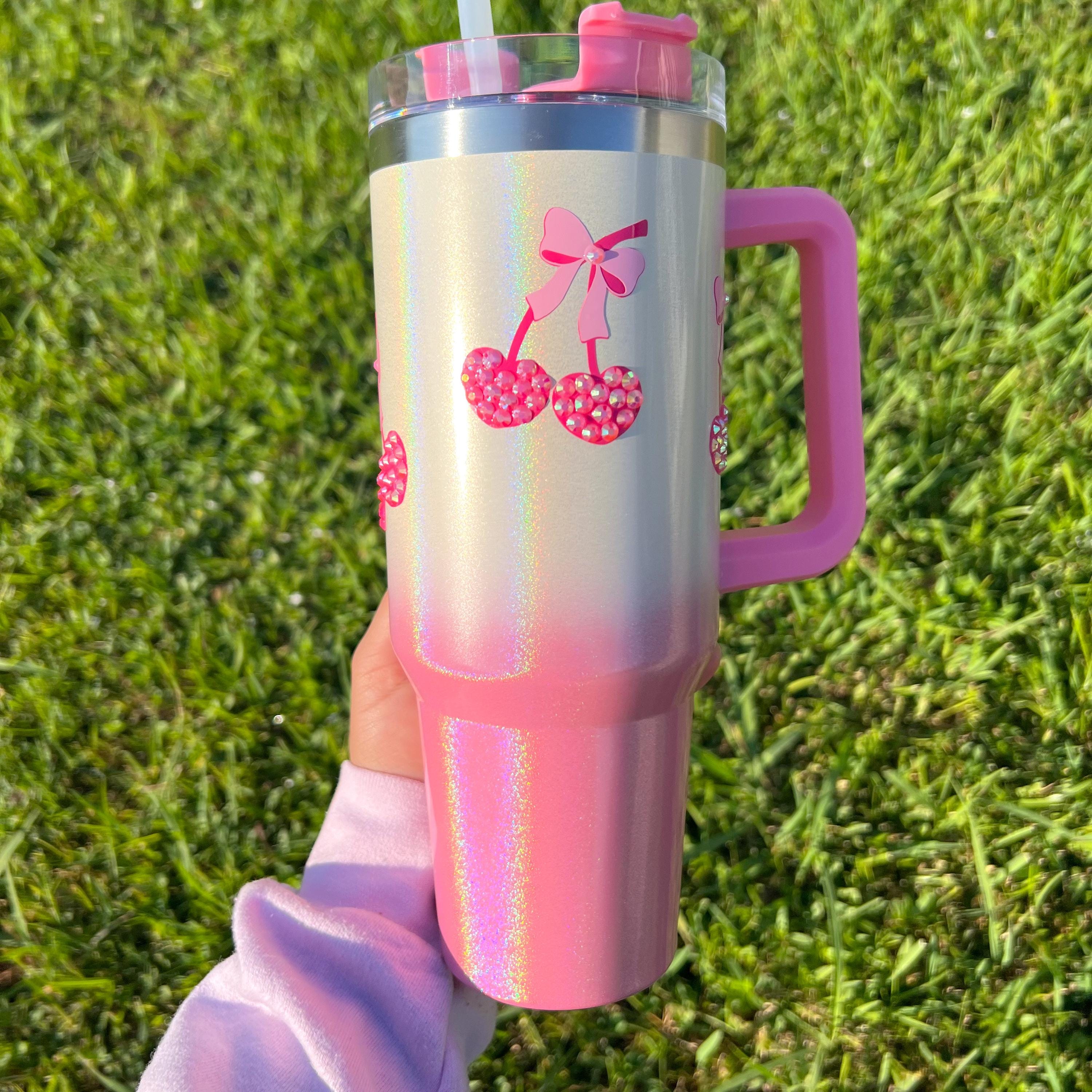 Bling cherry 40oz tumbler | coquette tumbler | gift for her