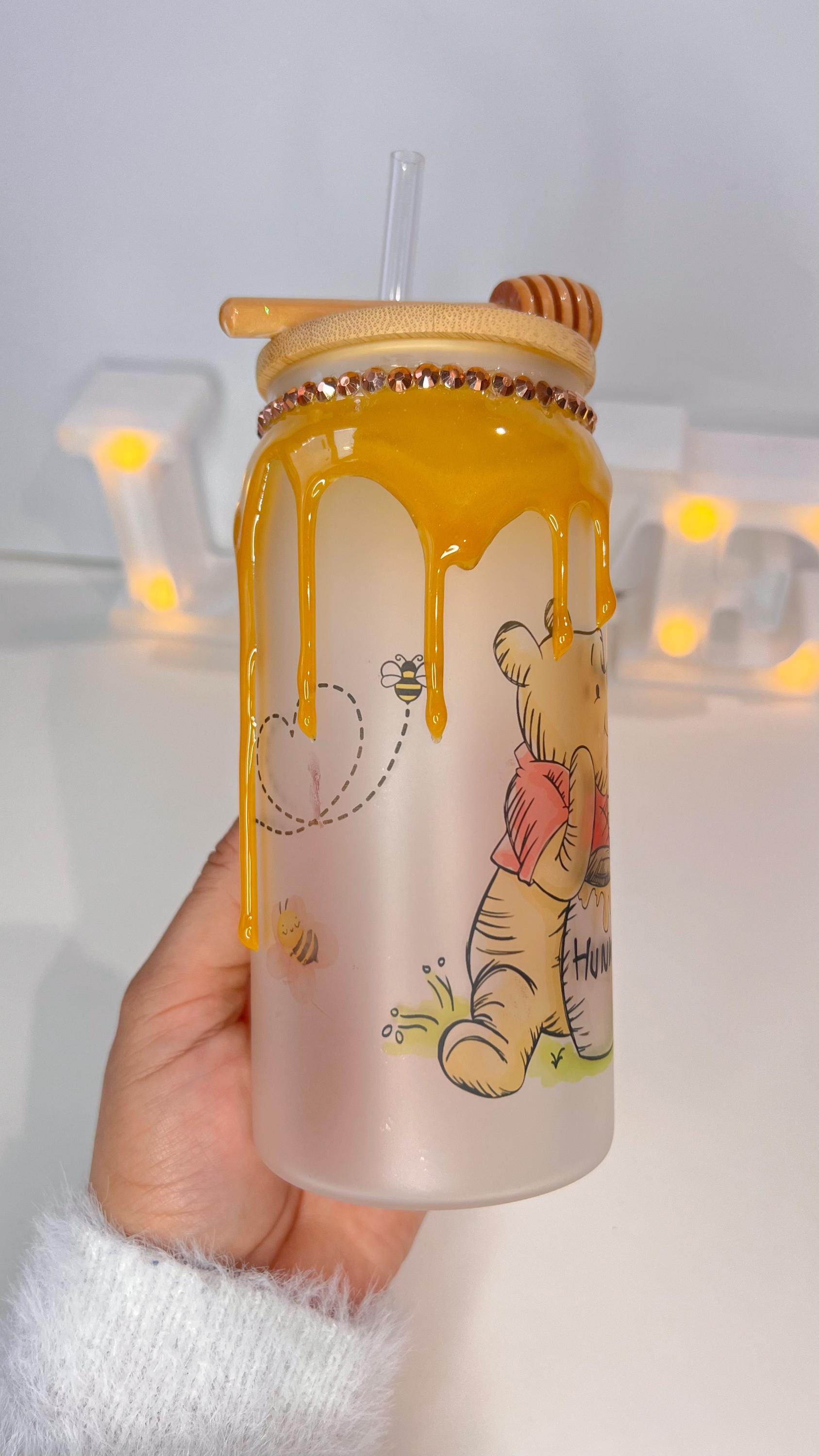 Honey drip cup | cute bear cup | decorated lid | girly cup | frosted cup