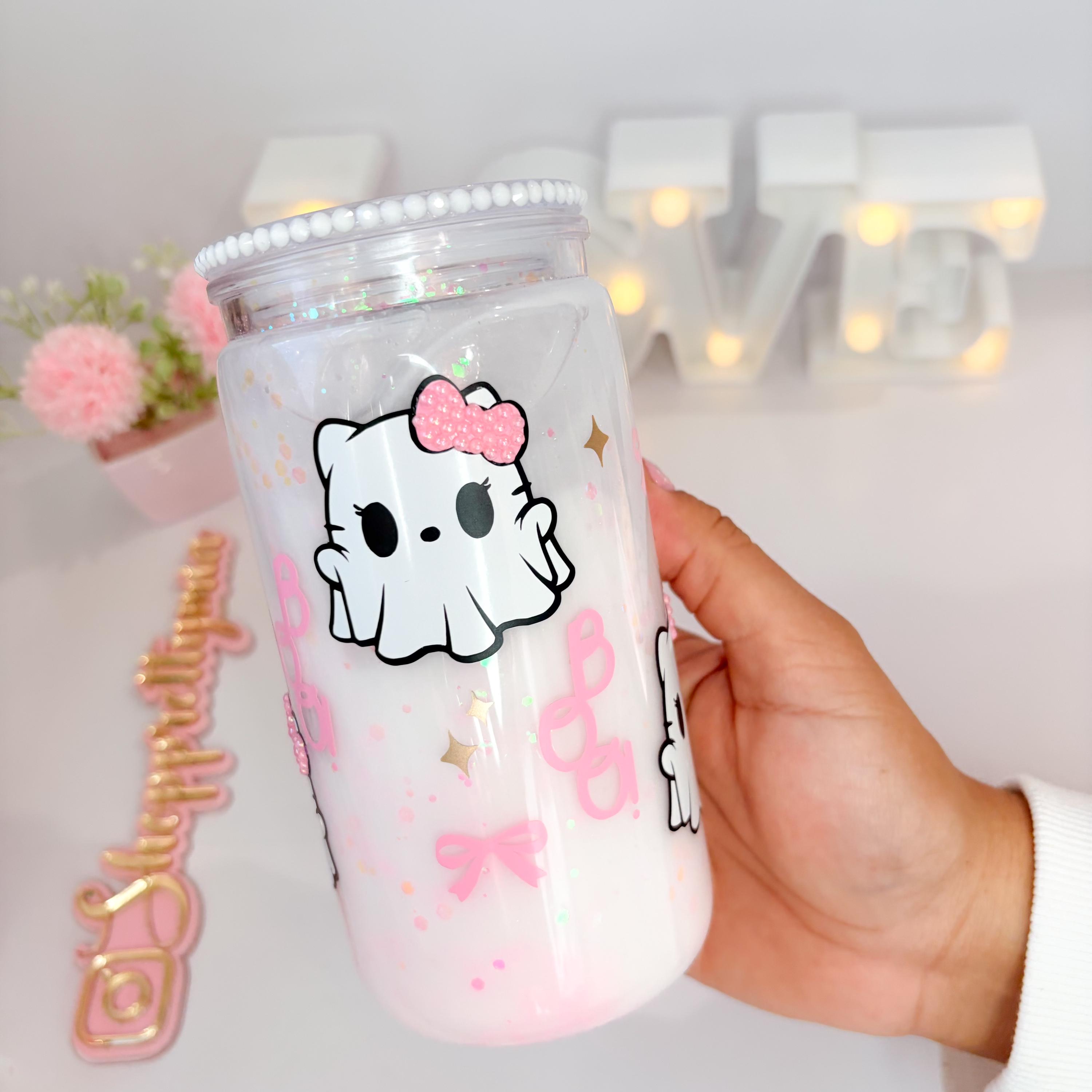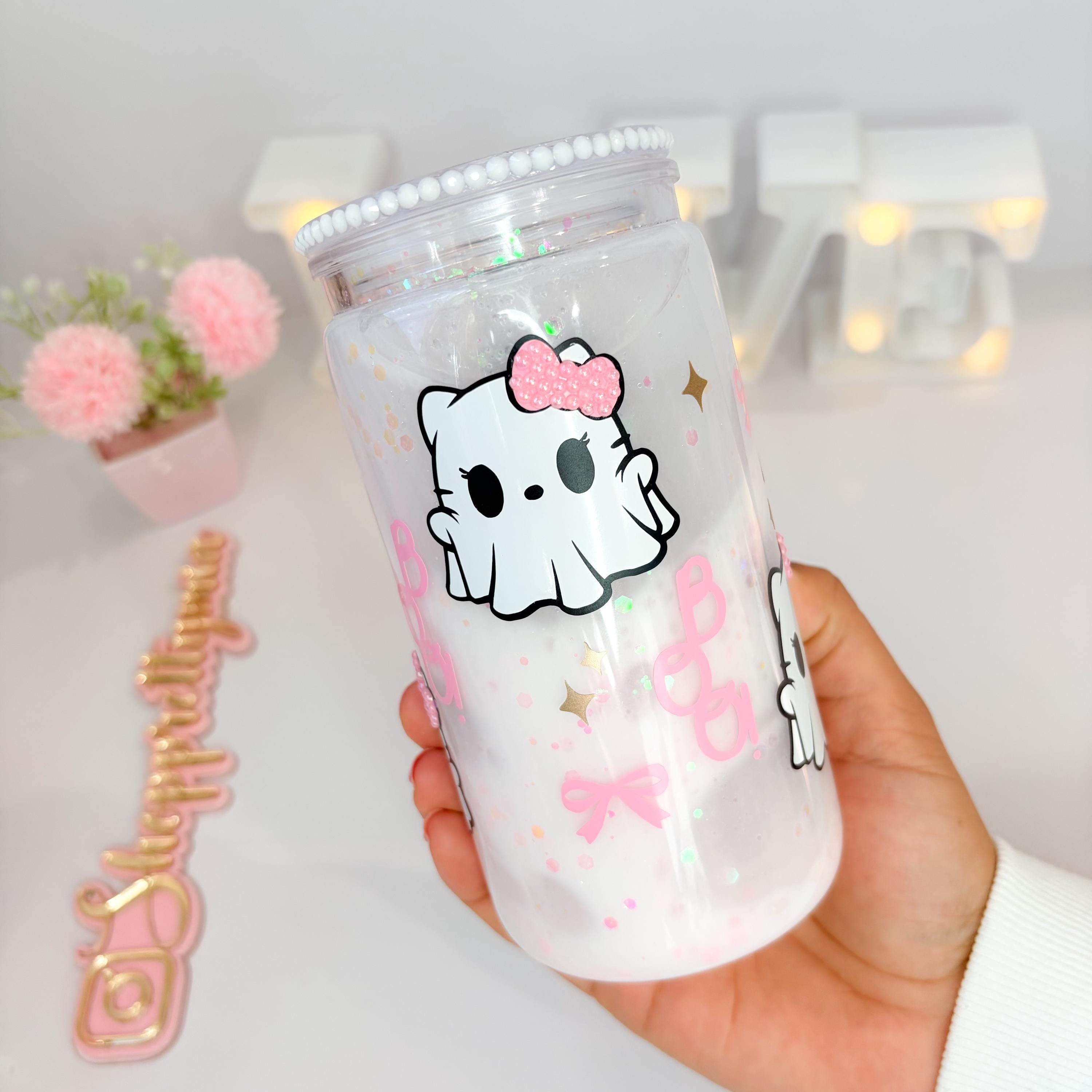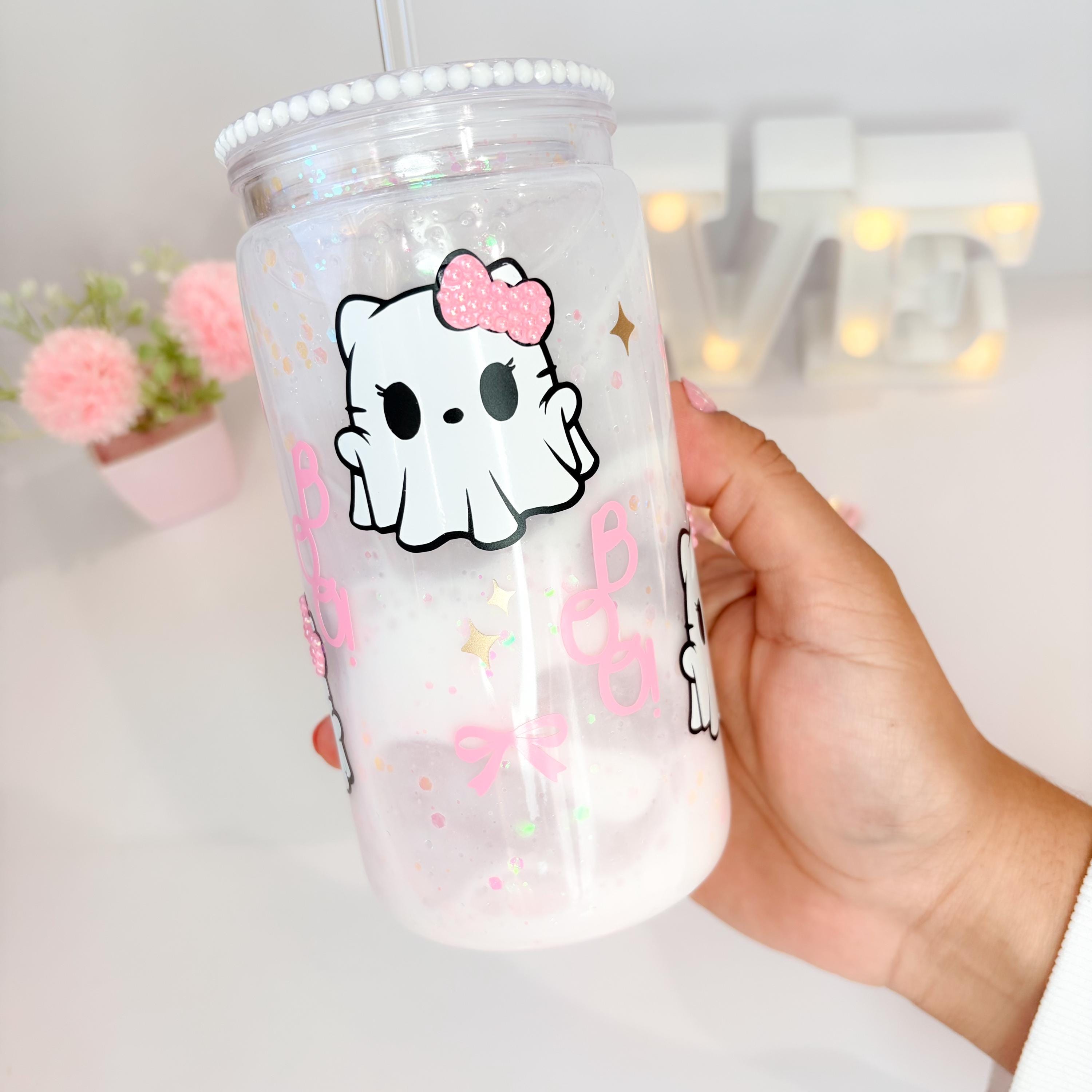 Bring some glittery chaos to your daily sip with this handmade Hello Kitty-inspired snowglobe tumbler! 💫
