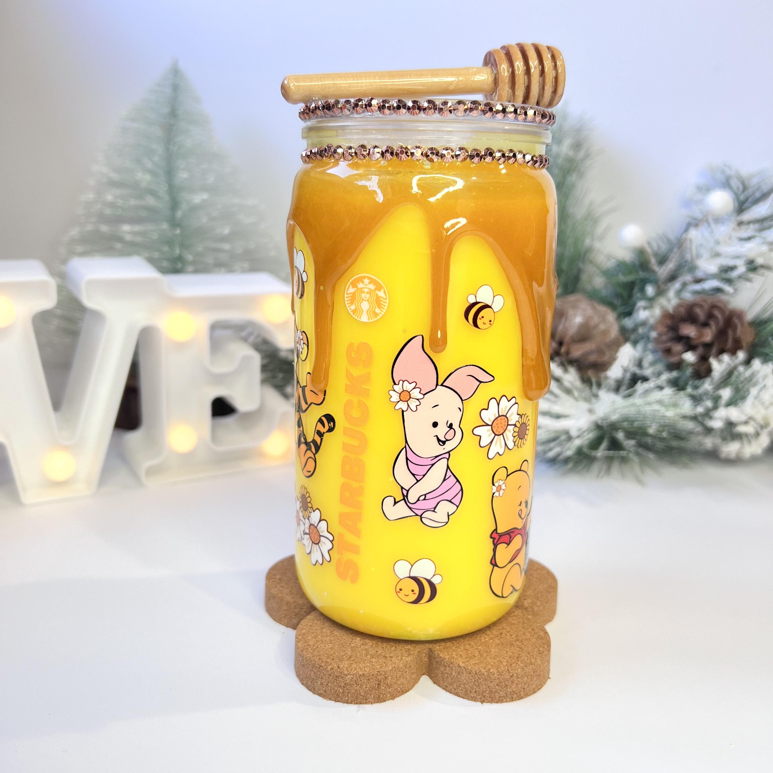 Honey drip cup | cute bear cup | decorated lid | girly cup | snowglobe cup