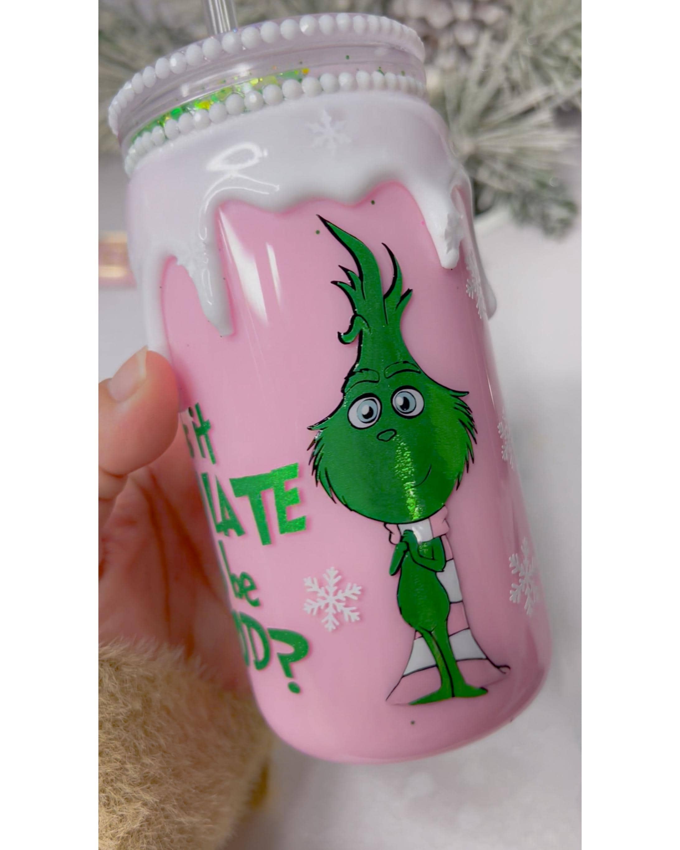 Baby Grinchy snowglobe Tumbler | Christmas Gift